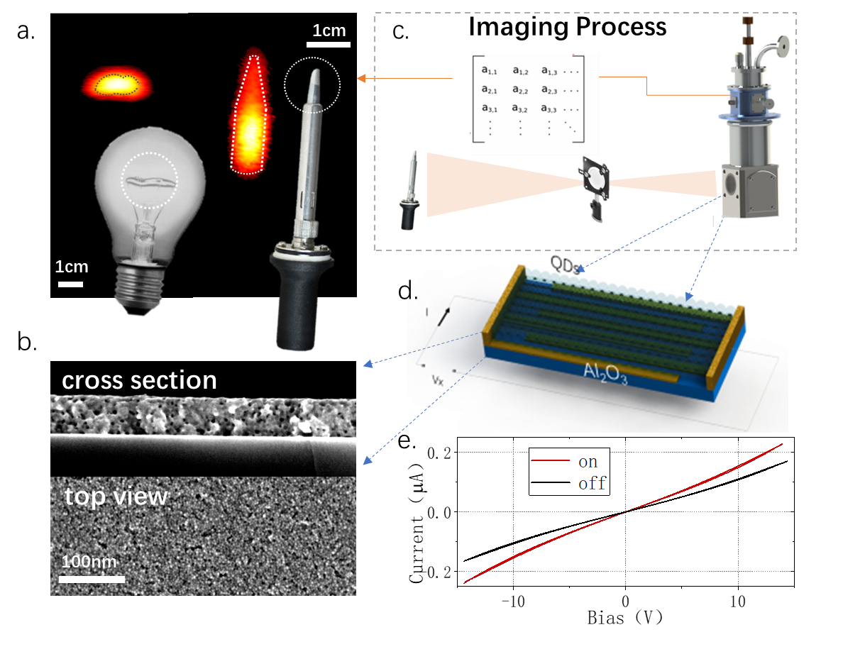 红外材料和器件的研究是红外技术发展的核心,实现低成本高性能的红外探测器是该领域的未来发展方向。然而由于海角社区 效应限制,红外材料受限于窄带半导体材料。利用材料的带内跃迁可以突破红外海角社区 材料对带隙的限制,极大拓宽红外材料的选择范围、丰富红外材料的制备方法,是降低红外材料于器件成本的有效路径之一。该工作利用胶体量子点液相合成与加工的优势,开发了室温混相配体交换的方法,在量子限域效应下实现高载流子迁移率(~1 cm2/Vs)及导带内掺杂的精确调控,使带内跃迁中红外海角社区 探测器在响应速度上提升1000倍(达到数微秒量级),响应度提升55倍.在黑体辐射下,中波5微米比探测率大于1.7×109 Jones,首次获得了基于带内跃迁胶体量子点红外相机的热成像,并实现了探测精度0.25 ppm至2000 ppm的CO2气体传感器。