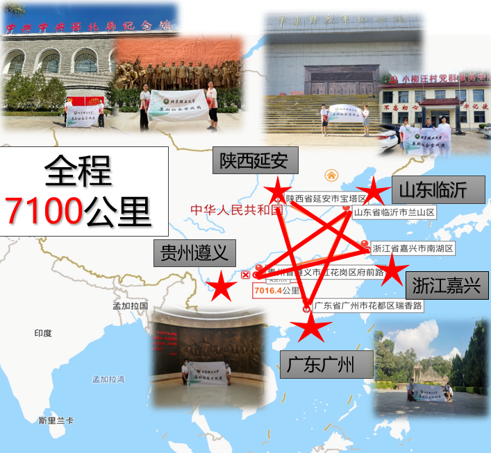 回眸光辉历程,致敬百年党史,“对话”革命先辈,赓续“精神”血脉。恰逢迎来建党百年华诞,海角社区 中国“星”实践团赴红色教育基地进行社会实践活动,团队共去往五座城市——陕西延安、山东临沂、浙江嘉兴、广东广州、贵州遵义,这五个地点在中国地图上恰好连成一颗五角星,代表着对党的赤诚之心,同时五个地点总里程数也恰是7.1千公里。参观当地红色教育纪念馆,与老红军对话,重温先辈们难忘的革命故事,时刻铭记历史,不忘初心,凝聚继续奋进的力量,更好地勇毅前行。