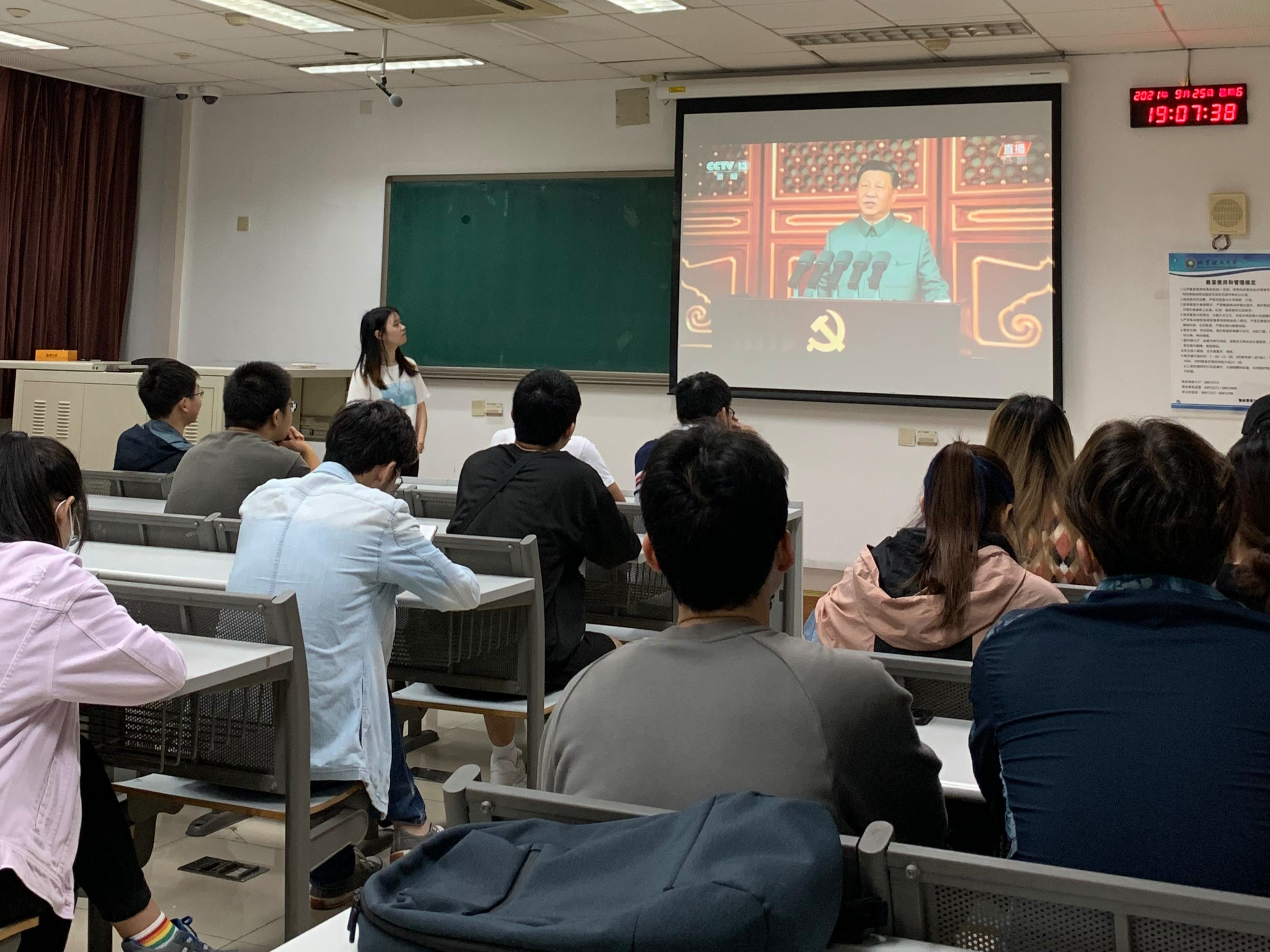 活动伊始,团支书组织同学们一起观看学习了习近平总书记在庆祝中国共产党成立100周年大会上的讲话,习近平总书记在大会上说道,“经过全党全国各族人民持续奋斗,我们实现了第一个百年奋斗目标,在中华大地上全面建成了小康社会,历史性地解决了绝对贫困问题,正在意气风发向着全面建成社会主义现代化强国的第二个百年奋斗目标迈进。”在这一百年的奋斗历程中,正是在党的领导下,先辈们抛头颅洒热血才换来当今之盛世。我们今天的幸福生活是多么的来之不易!