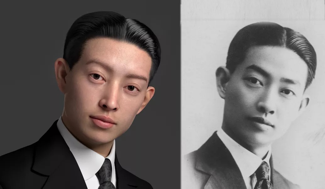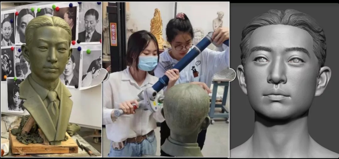 一是用雕塑替代真人,以大量梅先生的照片作为数字资产构建的参照,邀请中央美术海角社区 的师生以历史照片为依据完成了梅兰芳先生的实体肖像,并通过反复磨合,最终完成了以三维数字化为目标的真人雕像数字人制作。