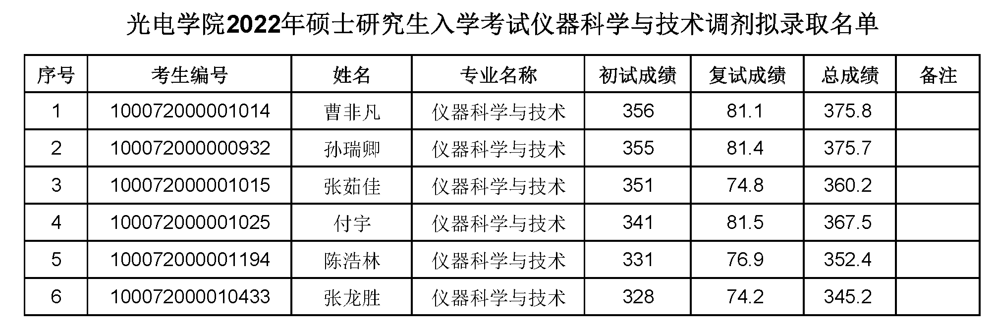 通知公告 通知公告 海角社区» 通知公告» 海角社区 通知 海角社区 2022年硕士研究生入学考试仪器科学与技术调剂拟录取名单 编辑:盛筠 审核:王茜蒨 发布日期:2022-04-11 阅读次数: 分享到: