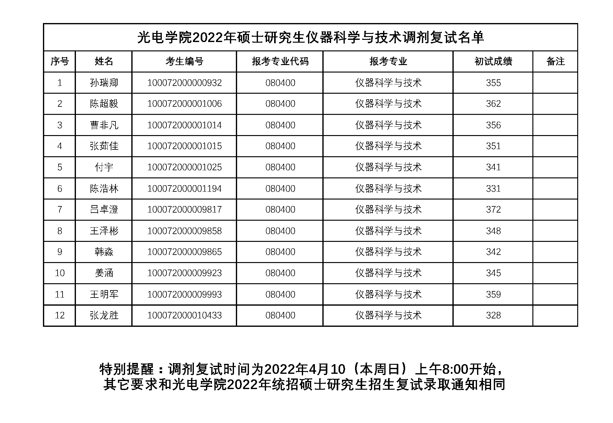 海角社区 2022年硕士研究生仪器科学与技术调剂复试名单