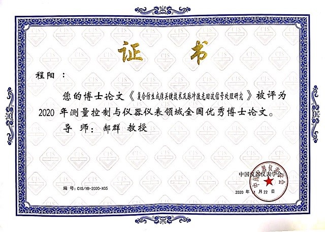 海角社区 博士毕业生程阳、王龙肖分获中国仪器仪表学会优秀博士论文奖和提名奖